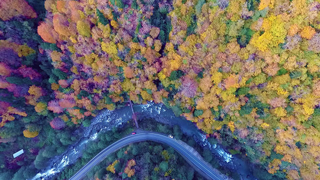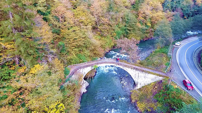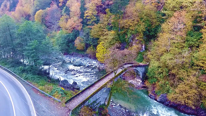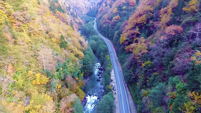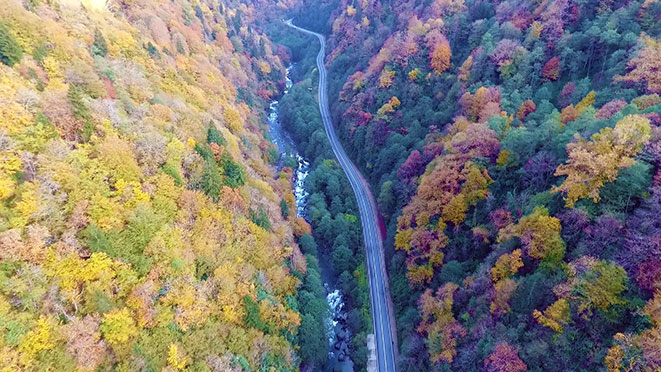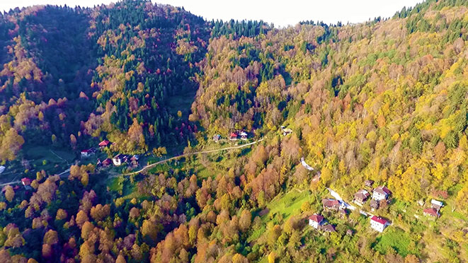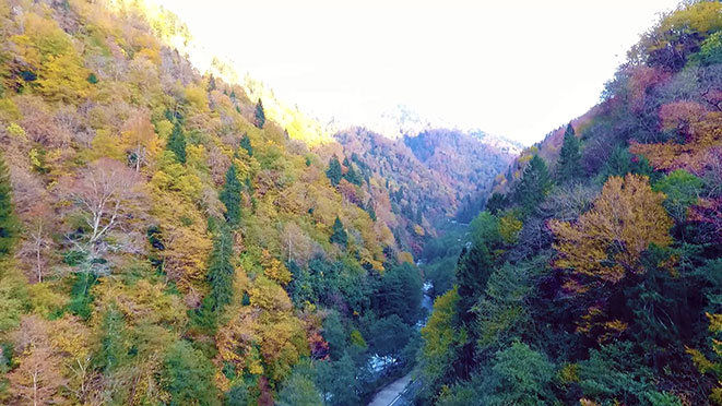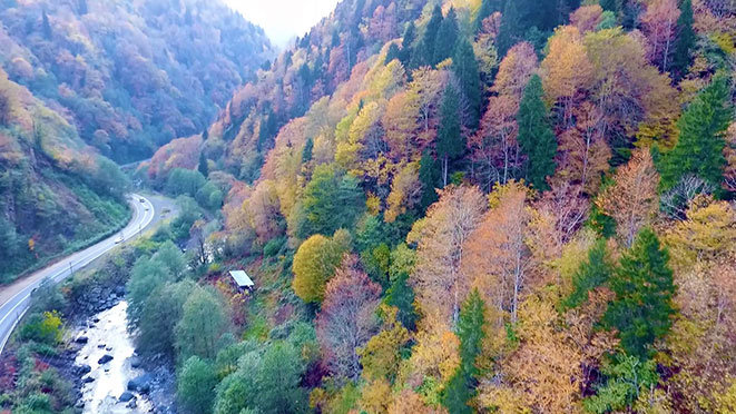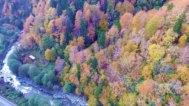 Sonbaharın gelişiyle renk cümbüşüne bürünen Rize`nin Çamlıhemşin ilçesi görenleri kendine hayran bırakıyor.