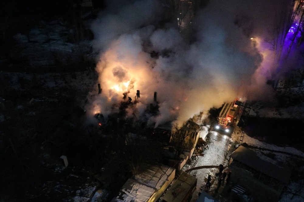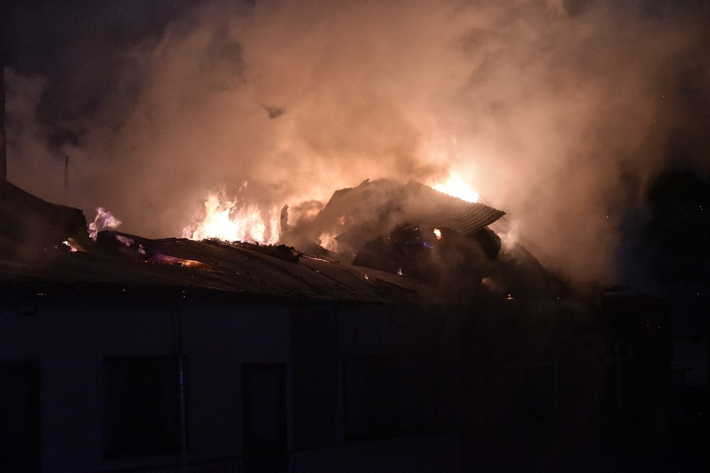 Gümüşhane’nin kent merkezindeki bir binanın çatı katında çıkan yangında otların tutuşması sonucu ev kullanılamaz hale gelirken, alevler saatler süren çalışmayla kontrol altına alındı.