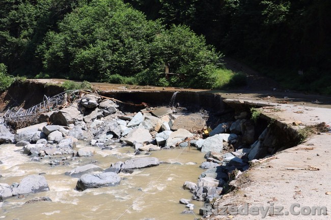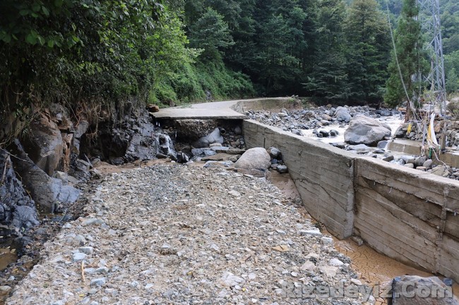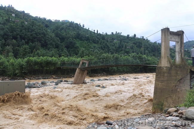 Geçtiğimiz hafta Karadeniz Bölgesinin doğusunda yaşanan aşırı yağışlarla yaşanan tahribat ardından başlayan çalışmalar devam ediyor. KORKUTAN BİLANÇO Yaşanan yağışlar ardından Rizenin Güneysu ilçesinde yapılan incelemeler ardından çıkan fatura yaklaşık 50 milyon TL oldu. Bölgede tahrip olan 10 kilometre yol yeniden yapılacak. Yine tahrip olan 7 bent, yıkılan 4 köprü yerine yeni körüler inşa edilecek. FELAKETİN EŞİĞİNDEN DÖNÜLDÜ Metrekareye yağan yaklaşık 150 kilo yağmurla beraber ilçede yaşanan sel ve heyelanlarla ana yollar çöktü, asma ve beton köprüler yıkıldı, ev istinat duvarları çöktü. Rize`ye komşu il Artvin ve özellikle Hopa ilçesinde ise yaşanan afet felakete dönüştü ve can kayıplarına sebep oldu. Neyse ki Rize`de can kaybı yaşamadı; fakat afetin ardından ortaya çıkan manzara nasıl bir felaketin eşiğinden dönüldüğünü de gözler önüne serdi.