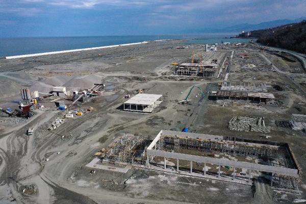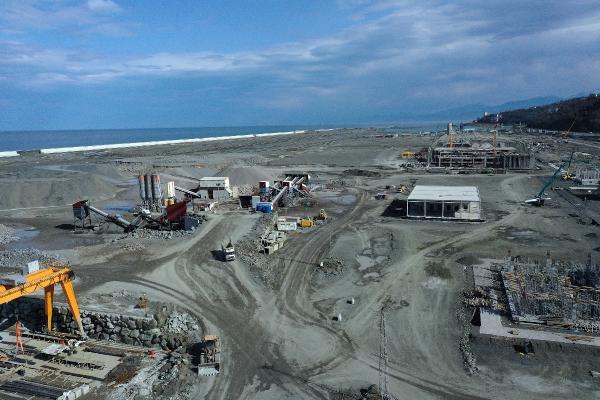 Ulaştırma ve Altyapı Bakanlığı'nca bin hektarlık alanda projelendirilen, tamamlandığında Türkiye'nin deniz dolgusuna inşa edilecek 2'nci havalimanı olacak Rize-Artvin Havalimanı'nda pistlerin beton ve asfalt kaplamasına geçiliyor.