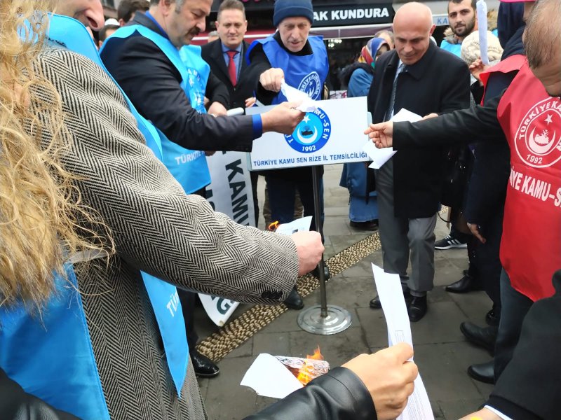 Maaş Zammını Bordro Yakarak Protesto Ettiler