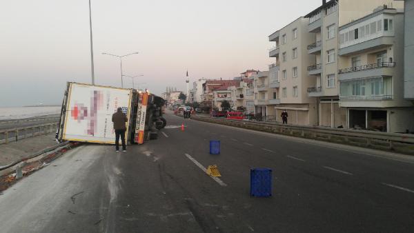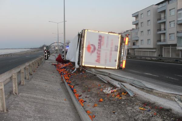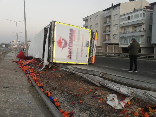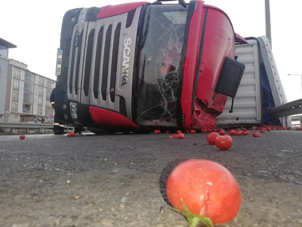 Ordu'da TIR devrildi, sebze- meyveler yola saçıldı