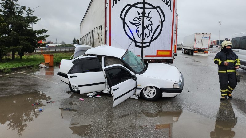 Düzce'de dinlenme tesisinde park halindeki tıra çarpan otomobildeki 3 kişi yaralandı