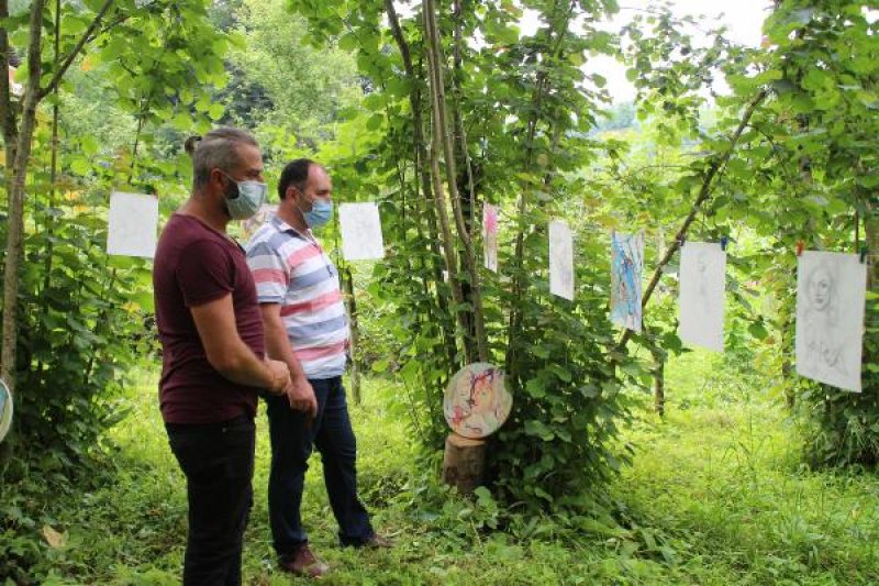 Pandemi Sürecinde Yaptığı Resimleri Fındık Tarlasında Sergiledi