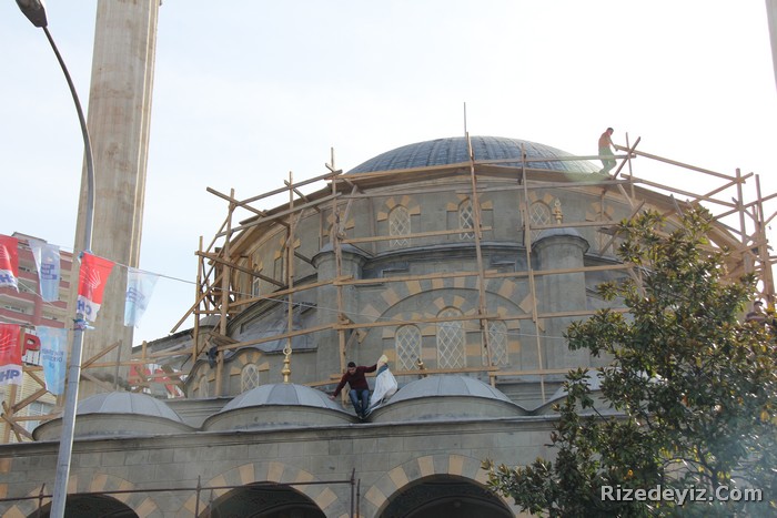 Ramazan ayında etrafı süsleyen mahya, Camii'nin iki minaresi arasına asılan ışıklı yazılardır.