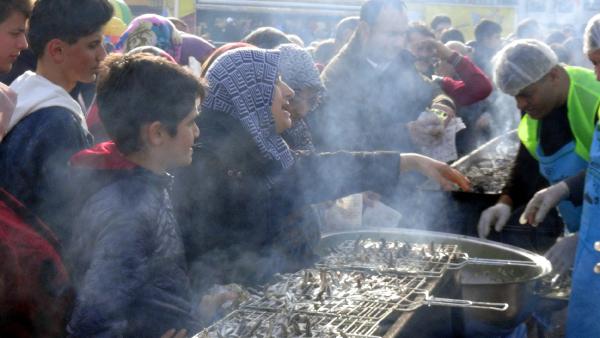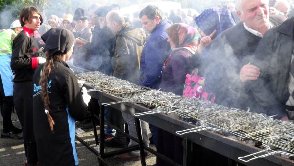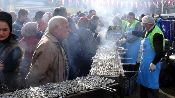 RİZE'de, düzenlenen Hamsi Festivali'nde ikram edilen 2,5 ton hamsi, 2 saatte tükendi.