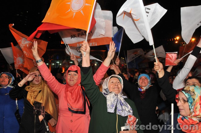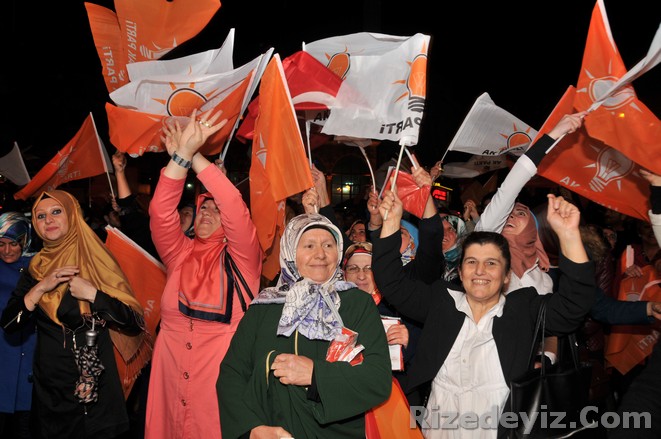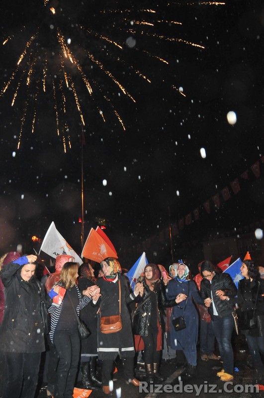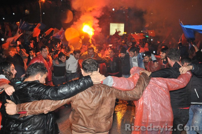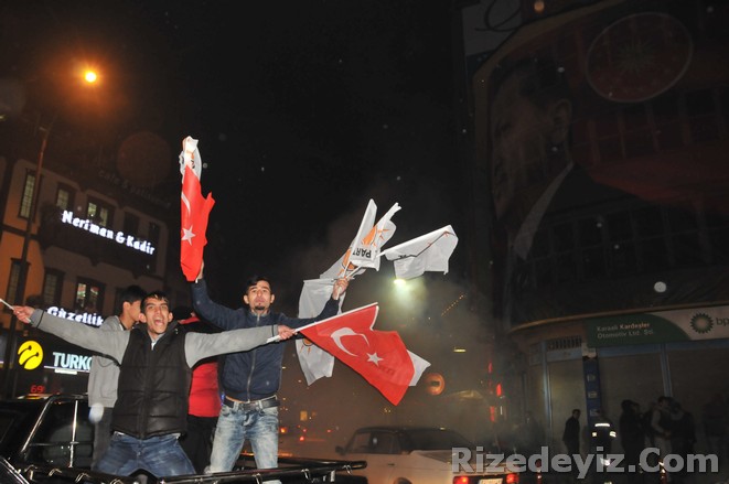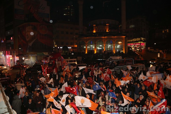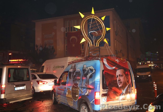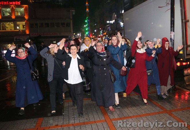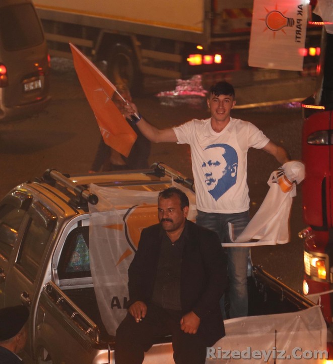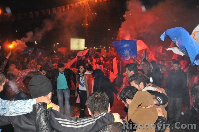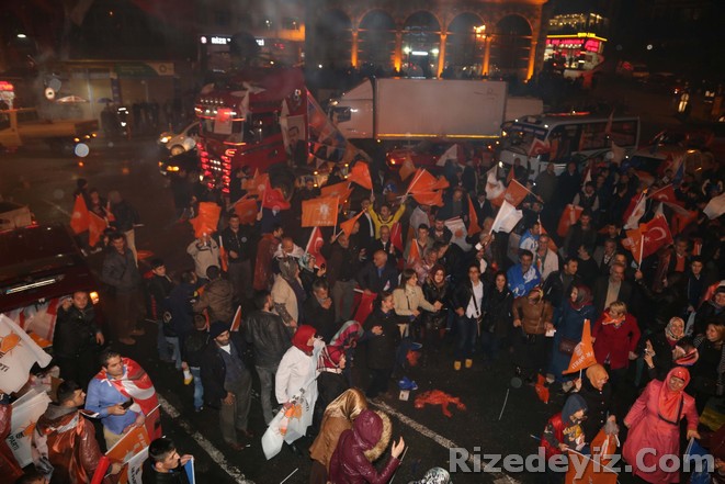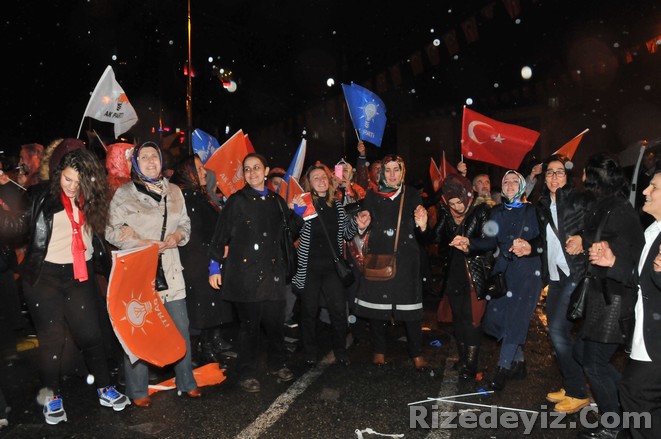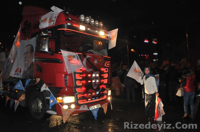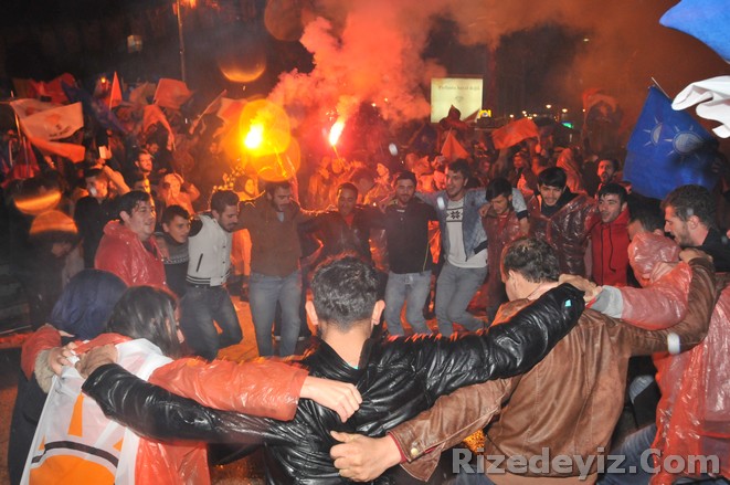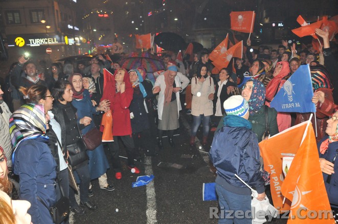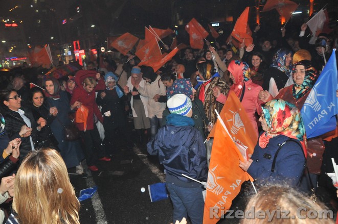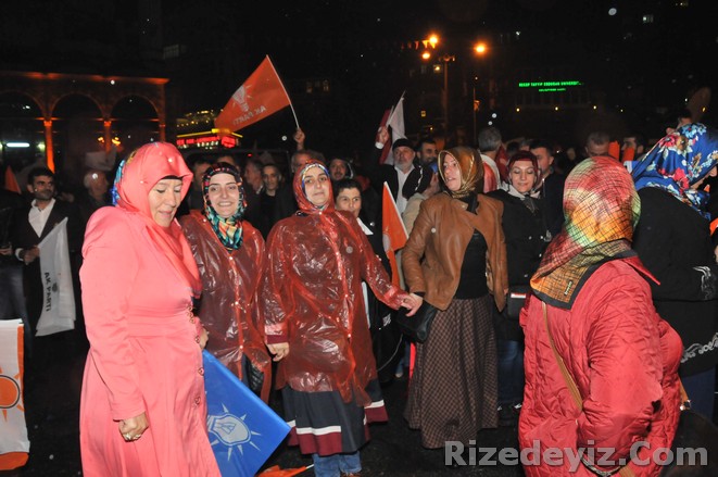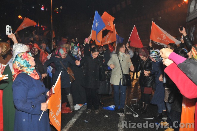 1 Kasım milletvekili genel seçimlerinin açıklanmaya başlaması ile birlikte Rize`de AK Partili vatandaşlar kutlama düzenledi