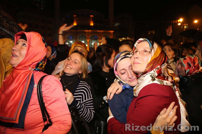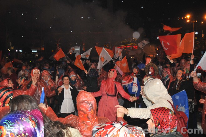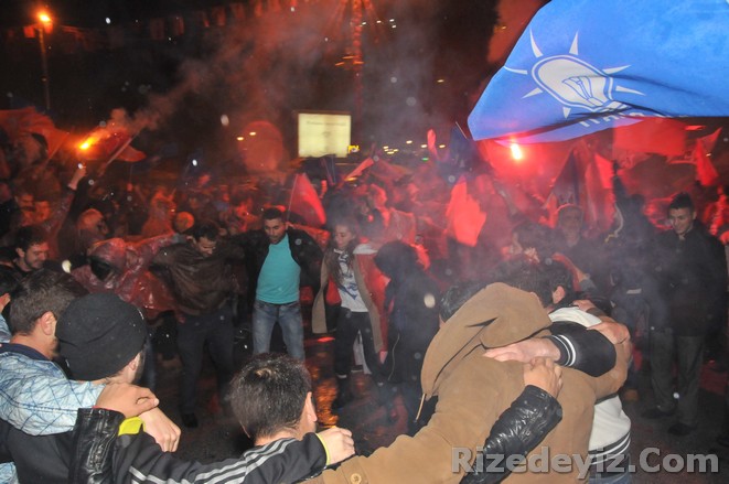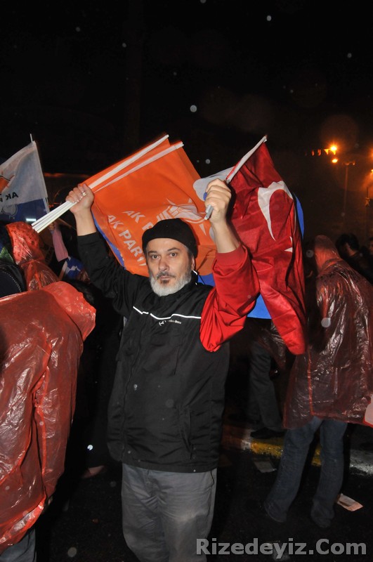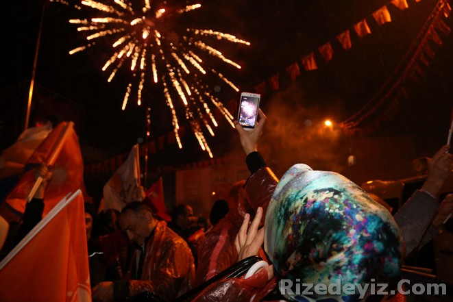 Oy oranlarının açıklanmaya başlaması ile birlikte Cumhuriyet Meydanı`nda toplanan çok sayıda AK Partili, yağmur altında horon oynayarak elde ettikleri zaferi kutladılar. İşte Rize meydandan gelen kareler: