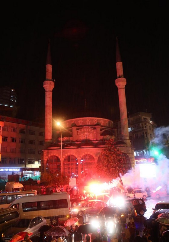 Ramazan ayında etrafı süsleyen mahya, Camii'nin iki minaresi arasına asılan ışıklı yazılardır.