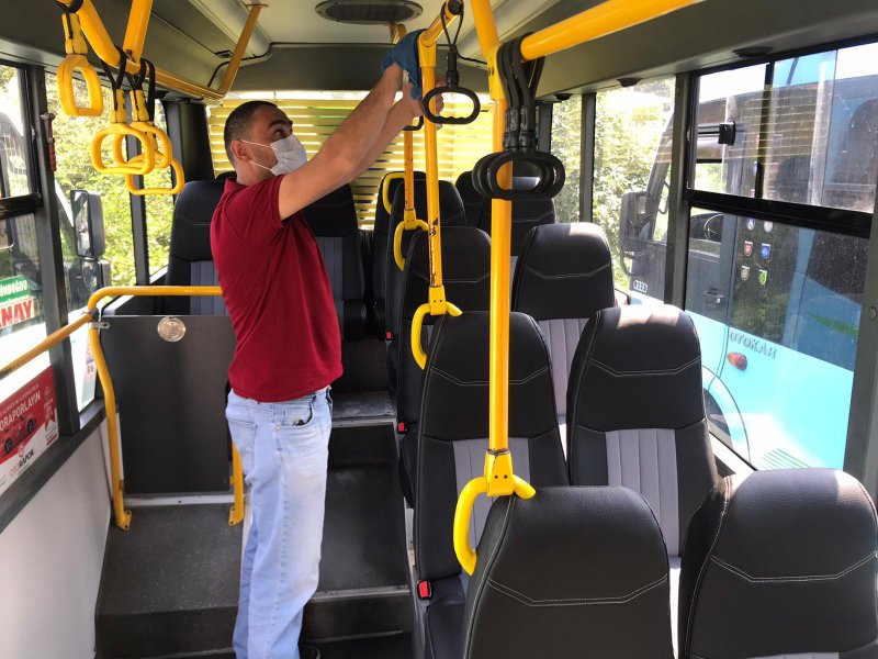 Rize'de Dolmuşlar Dezenfekte Ediliyor