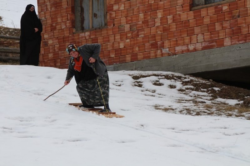 Rize'de Karla Birlikte Tahtalı Kayak Eğlencesi Başladı