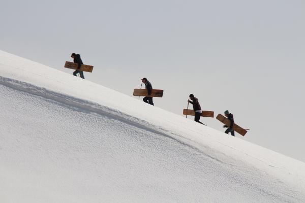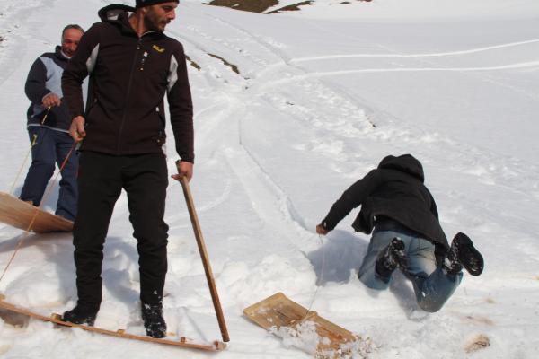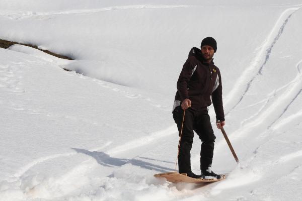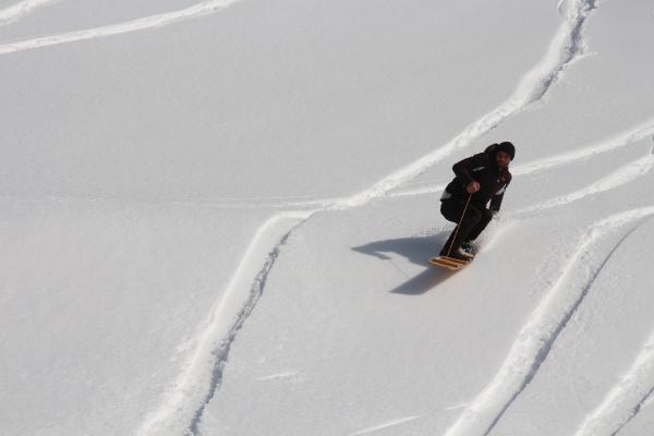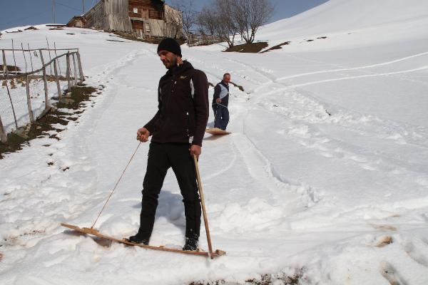 Rize'de bulunan Meşeköy'de her yıl yağan kar ile 7'den 77'ye birçok kişi, yörede 'petranboard' adını verdikleri tahtalarla kayak yapıyor.