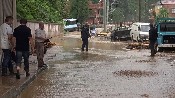 RİZE’de sabah saatlerinde başlayıp etkisini artıran sağanak, sele neden oldu. Merkeze bağlı Muradiye beldesinde, taşan dere beldeyi su altında bıraktı.