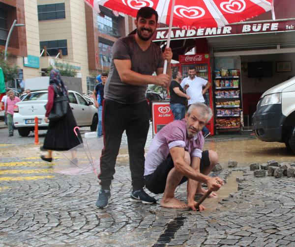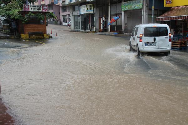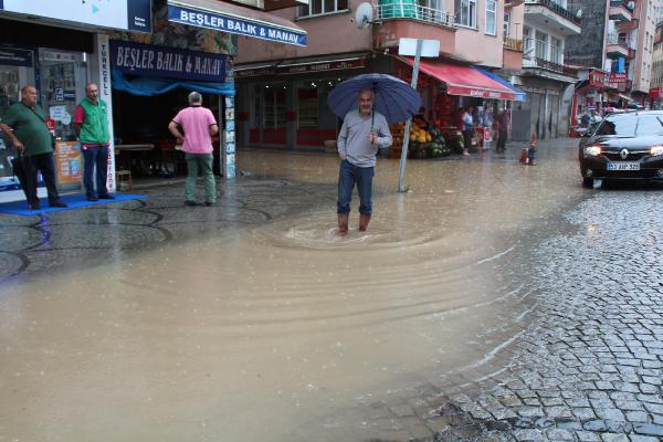 RİZE'de etkili olan sağanak, cadde ve sokakları göle çevirdi, bazı ev ve iş yerlerinin zemin ve bodrum katlarını su bastı.