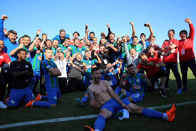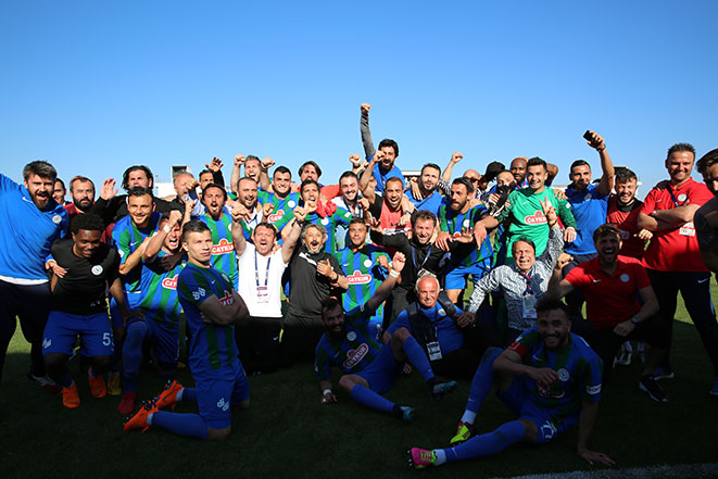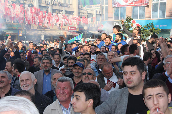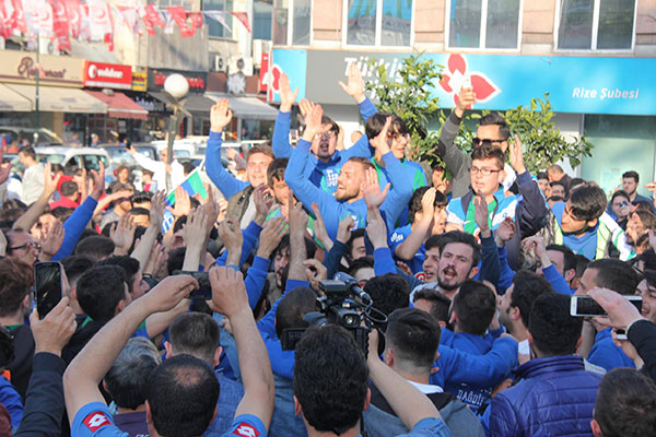 Çaykur Rizespor’un Spor Toto 1`inci Lig`in 33`üncü haftasında deplasmanda konuk olduğu Ümraniyespor`u 1-0 yenerek ligin bitimine bir hafta kala şampiyonluğunu ilan etmesi ve Süper Lig’e çıkması, Rize`de coşkuyla kutlandı.