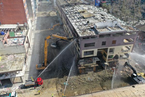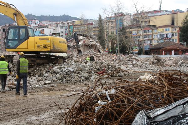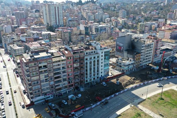 RİZE'de kentsel dönüşüm kapsamında deniz dolgusu üzerine yapılan ve korozyon nedeniyle riskli hale gelen binalarda yıkım sürüyor.