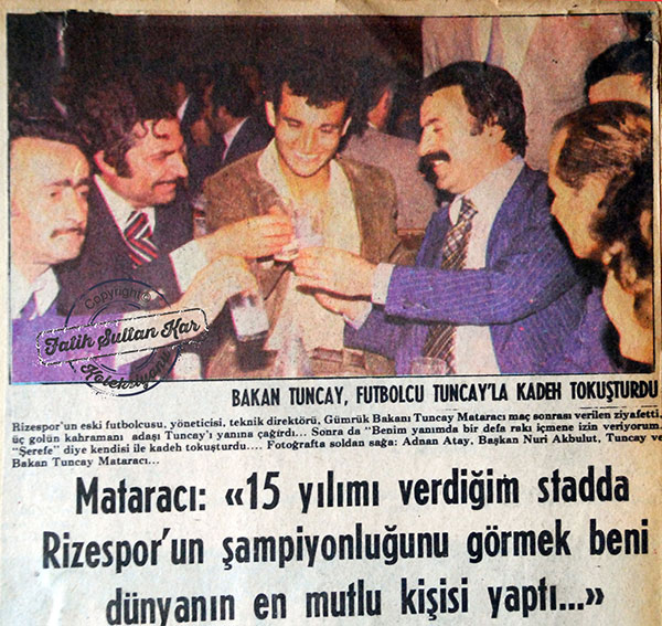 Dönemin Rizeli Gümrük ve Tekel Bakanı Tuncay Mataracı da, taraftar ve idarecilerin şeref turu oldukça renkli oldu