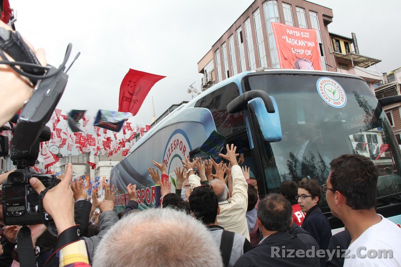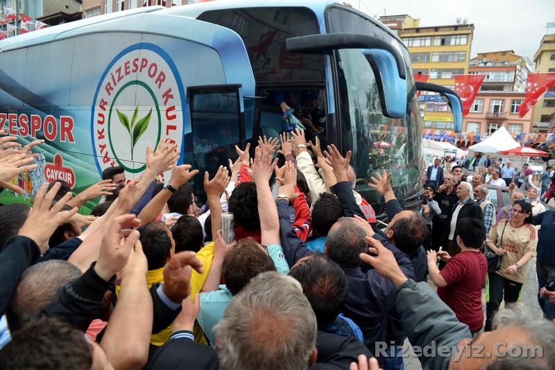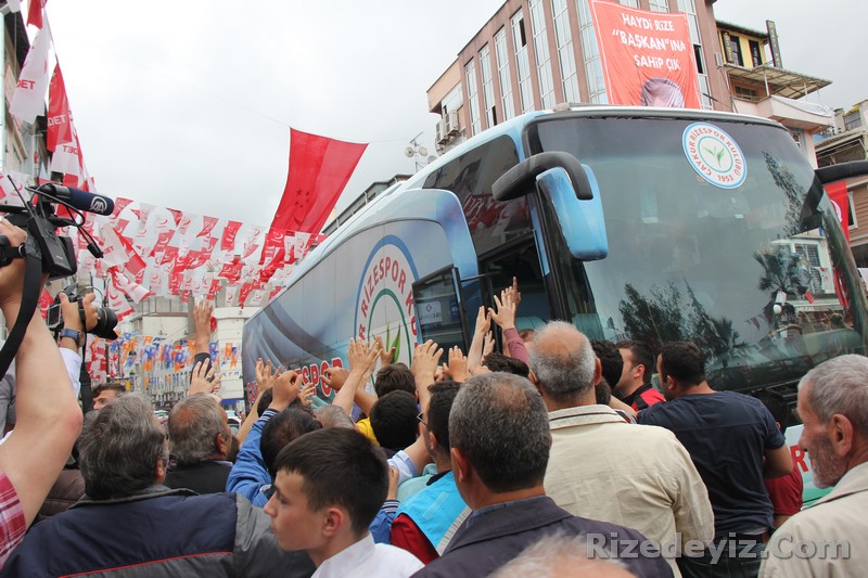 Rizespor taraftarları, teknik heyet, futbolcular ve Rize milletvekili Hasan Karal Rize Belediye Parkında buluştular.