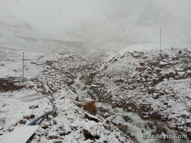 Doğu Karadeniz Bölgesi'nin önemli turizm merkezlerinden Rize'nin Çamlıhemşin ilçesine bağlı Ayder Yaylası beyaza büründü.