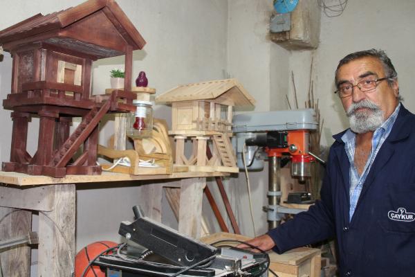 RİZE'nin Hemşin ilçesinde, torununa oyuncak ev yapmak için eline aldığı tahta ve çekiçle çalışmalara başlayan Nazmi Çelik (70), 12 yılda bilmediği ahşap işinde usta olup, maket ev siparişi almaya başladı.