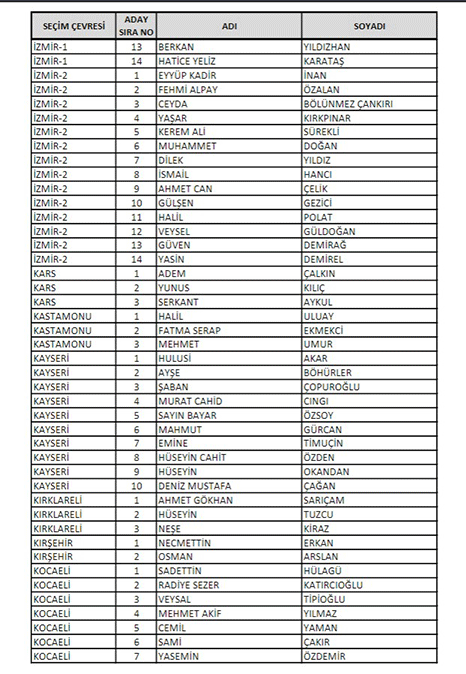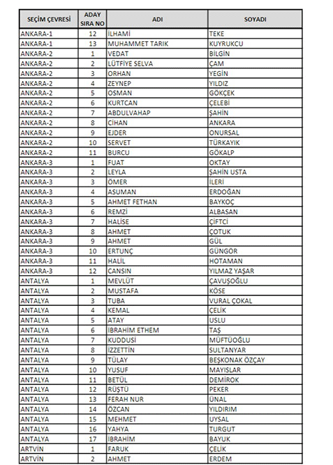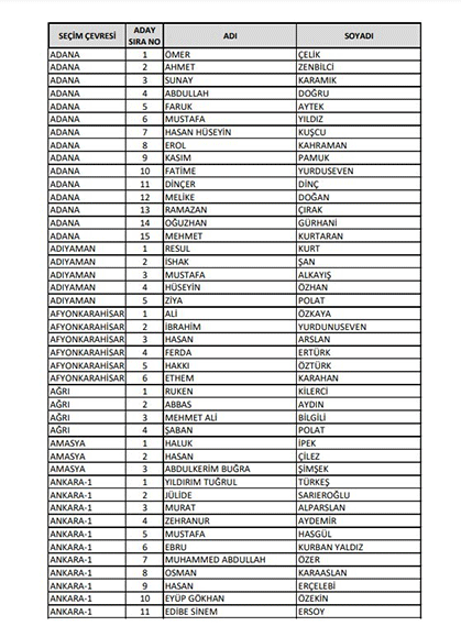 AK Parti'de 2023 seçimleri Milletvekili aday listesi belli oldu. 3 dönem kuralı istinasız olarak uygulanırken, bakanların listeye hangi ilden kaçıncı sıradan gireceği de belli oldu.