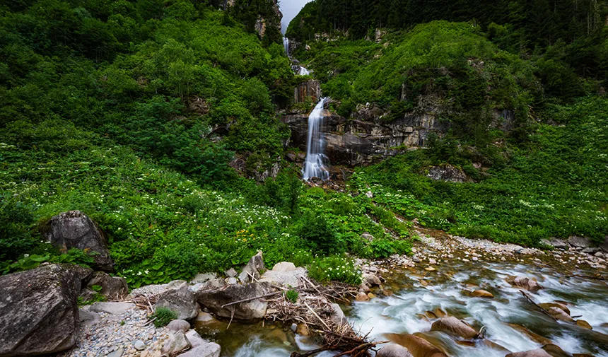 Rize'nin İkizdere ilçesinde bulunan Cimil Vadisi ve Cimil Şelalesi, Karadeniz’in doğal güzelliklerini gözler önüne sererken, ziyaretçilerine etkileyici manzaralar sunuyor.