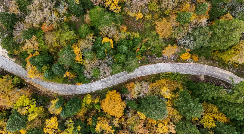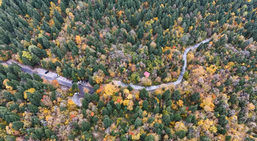 Bartın-Karabük sınırlarında bulunan 20 bin hektarlık alandaki 9 yaylada sonbaharla birlikte ağaçların sarı ve kahverenginin tonlarını almaya başlamasıyla ortaya çıkan manzara dronla görüntülendi.