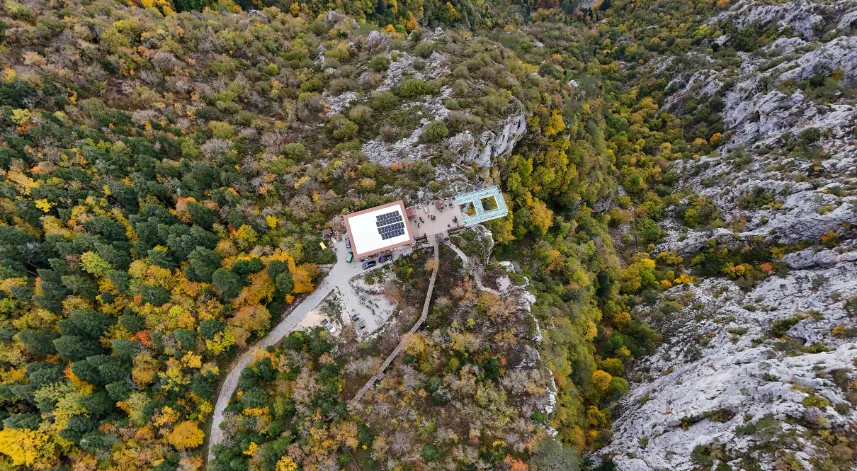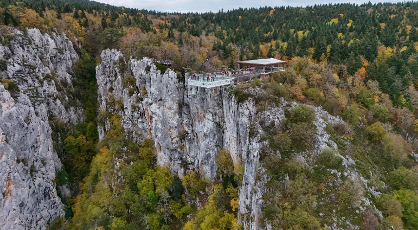 Kastamonu'nun Azdavay ilçesindeki cam seyir terası, ziyaretçilerine sonbaharın güzelliklerini yüksekten izleme imkanı sunuyor.