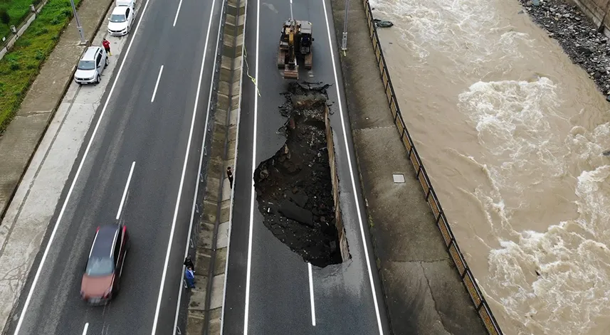 Rize’de etkili olan şiddetli yağışlar sonrasında çöken Rize-Güneysu karayolunda çalışmalar başladı.