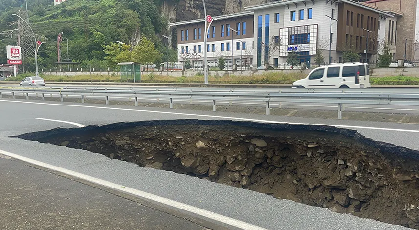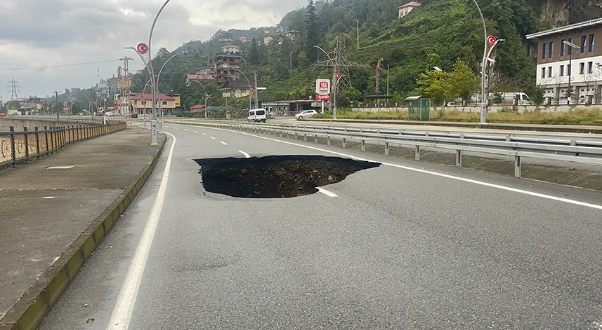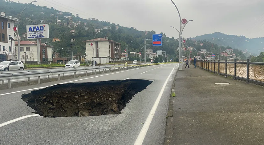 Rize’de yağışlar nedeniyle çöken yolda çalışma başlatıldı