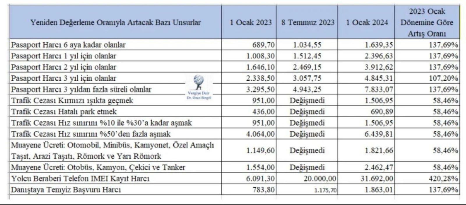 Türkiye İstatistik Kurumu'nun (TÜİK) ekim ayı enflasyonu ile birlikte, yeni yılda uygulanacak yeniden değerleme oranı da belli oldu. 2024'te cezalarda yüzde 58,46 oranında artış yaşanabilir. Peki, vergi ve harçlar ne kadar olacak?