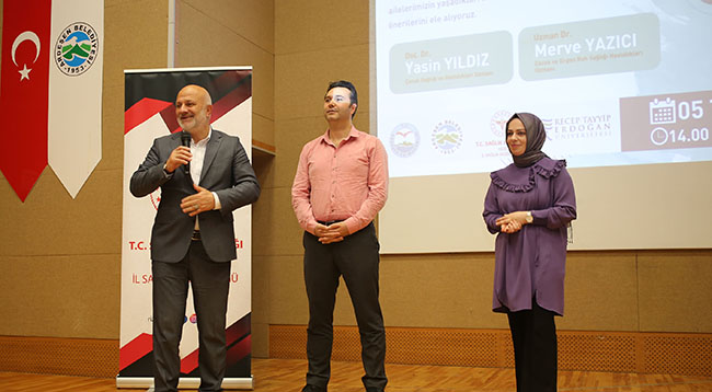 Çocukların bedensel ve ruhsal gelişimi, teknoloji bağımlılığı ile sık görülen davranış bozuklukları konularında ailelerin yaşadıkları zorlukları ve çözüm önerileri ele alındığı seminerde Recep Tayyip Erdoğan Üniversitesi (RTEÜ) Çocuk Sağlığı ve Hastalıkları Uzmanı Doç. Dr. Yasin Yıldız ile Çocuk ve Ergen Hastalıkları ve Ruh Sağlığı Uzmanı Dr. Merve Yazıcı konuşmacı olarak yer aldı.