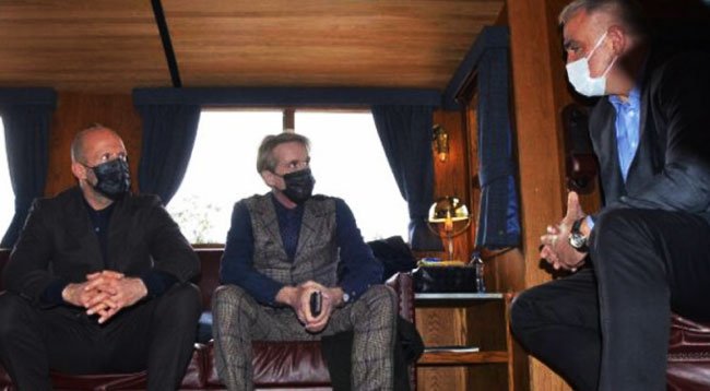 Kültür ve Turizm Bakanı Mehmet Nuri Ersoy, Antalya'da çekimleri devam eden 'Five Eyes' film setine sürpriz ziyarette bulundu. Bakan Ersoy, filmde rol alan dünyaca ünlü aktör Jason Statham, yönetmen Guy Ritchie ve film ekibiyle bir araya gelip, İngilizce sohbet etti.