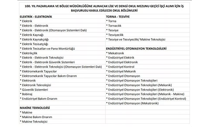 2- Lise ve Dengi Okul Mezunu (Ekli listedeki bölümlerden mezun olması),