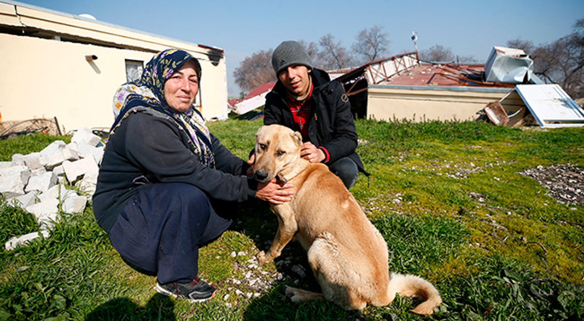 Hatay'da, Asi Nehri'nin kıyısında bulunan evleri deprem nedeniyle yıkılan ve oluşan yarıklara su dolması nedeniyle bahçelerinden çıkamayan 3 kişilik Genco ailesi, köpeklerinin yol göstermesiyle güvenli bölgeye ulaştı.