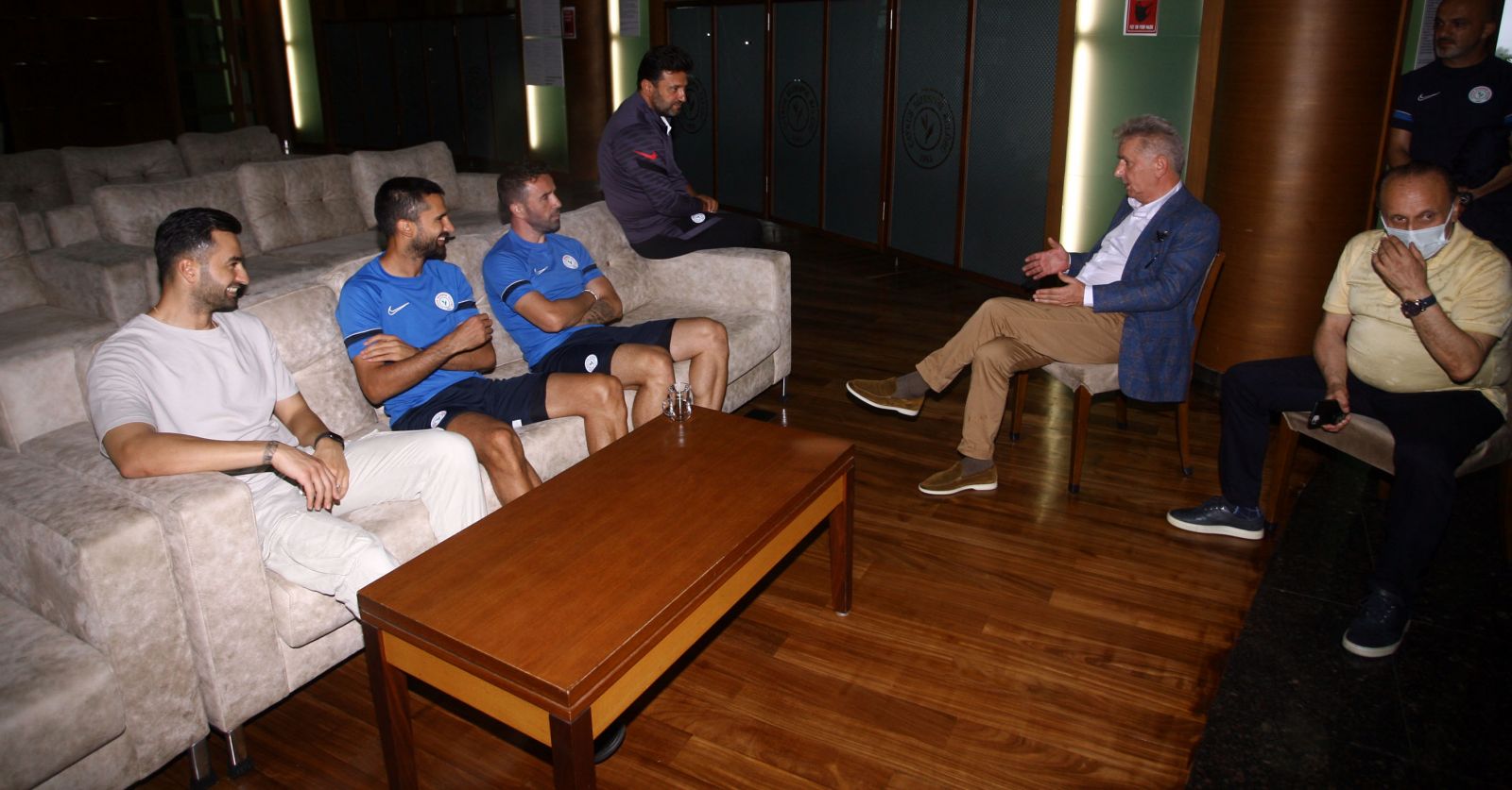Mehmet Cengiz Tesisleri'ni gezen Cengiz, Uygun ve oyuncularla sohbet ederken, yeşil-mavililere yeni sezon için başarı dileklerinde bulundu.