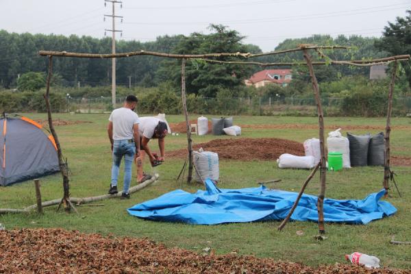 Toprak Mahsulleri Ofisi'nin fındığın kilosunu kalitesine göre 54 lirayı bulan fiyatlarla alması, fındık üreticilerini sevindirdi. Düzce'de fındığın hasadını tamamlayıp ürünlerini harmana indiren üreticiler, nöbete başladı. Sinirci köyü merasına fındıklarını seren köylüler, nöbet için baraka hazırladı. Ürünlerinin başında nöbet tutan çiftçiler, zaman zaman da fındığı kuruması için karıştırıyor. Sinirci köyü muhtarı Muzaffer Demirel, "Burası bizim köyümüzün merası, her yıl olduğu gibi vatandaşlarımız, fındıklarını toplayıp meraya seriyorlar ve burada her gece nöbet tutuluyor. Cumhurbaşkanımızın fındık fiyatlarını 54 lira olarak açıklaması, fiyatların yüksek olmasıyla hırsızlıktan korumak için fındık değerli olunca ailelerimiz burada bekliyor. Köylülerimiz bu şekilde fındıklarını hem kurutuyor hem koruyorlar. Fındık sezonu bitene kadar bu sürüyor" diye konuştu. Üreticilerden Yücel Güler ise nöbette olduklarını ifade ederek, "Biz fındık yaydık. Topladığımız fındığı getirdik, kurutuyoruz ve harman yapacağız. Burada gençler gece boyunca biri gelir alır diye nöbet tutuyorlar" dedi.