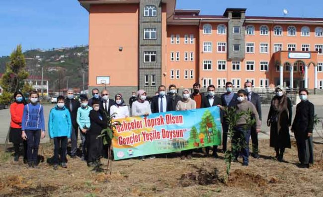 Rize'nin Güneysu ilçesinde "Bahçeler Toprak Olsun Gençler Yeşile Doysun" projesi kapsamında fidan dikimi gerçekleştirildi.