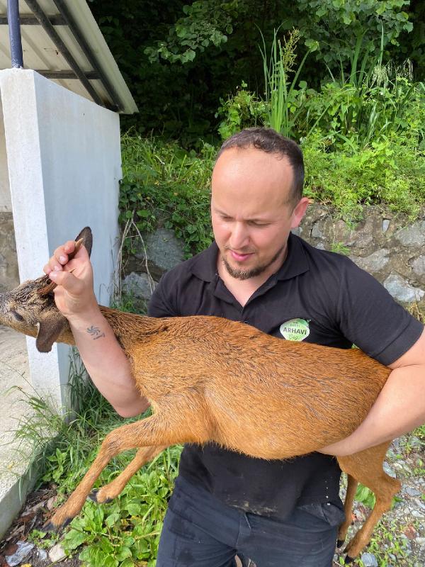 Kemerköprü köyündeki çay fabrikasında çalışan Alper Aydın, HES havuzunda akıntıya kapılıp, sürüklenen karacayı fark etti. Suya giren Aydın, köylülerin de yardımıyla karacayı çıkardı. Karaca, daha sonra doğaya salındı.