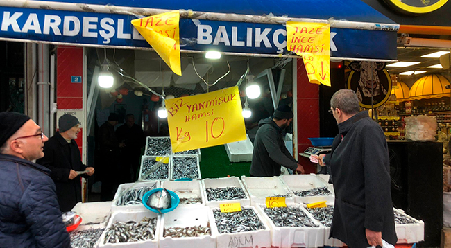Pazar’da esnaflık yapan Murat Kurt, hamsinin kilosunun 10 lira olduğunu belirterek "Hamsinin kilosu 10 liradır. Bugün halka çalışıyoruz. Bugün para kazanmak yok, halk kahramanı olduk” ifadelerini kullandı.