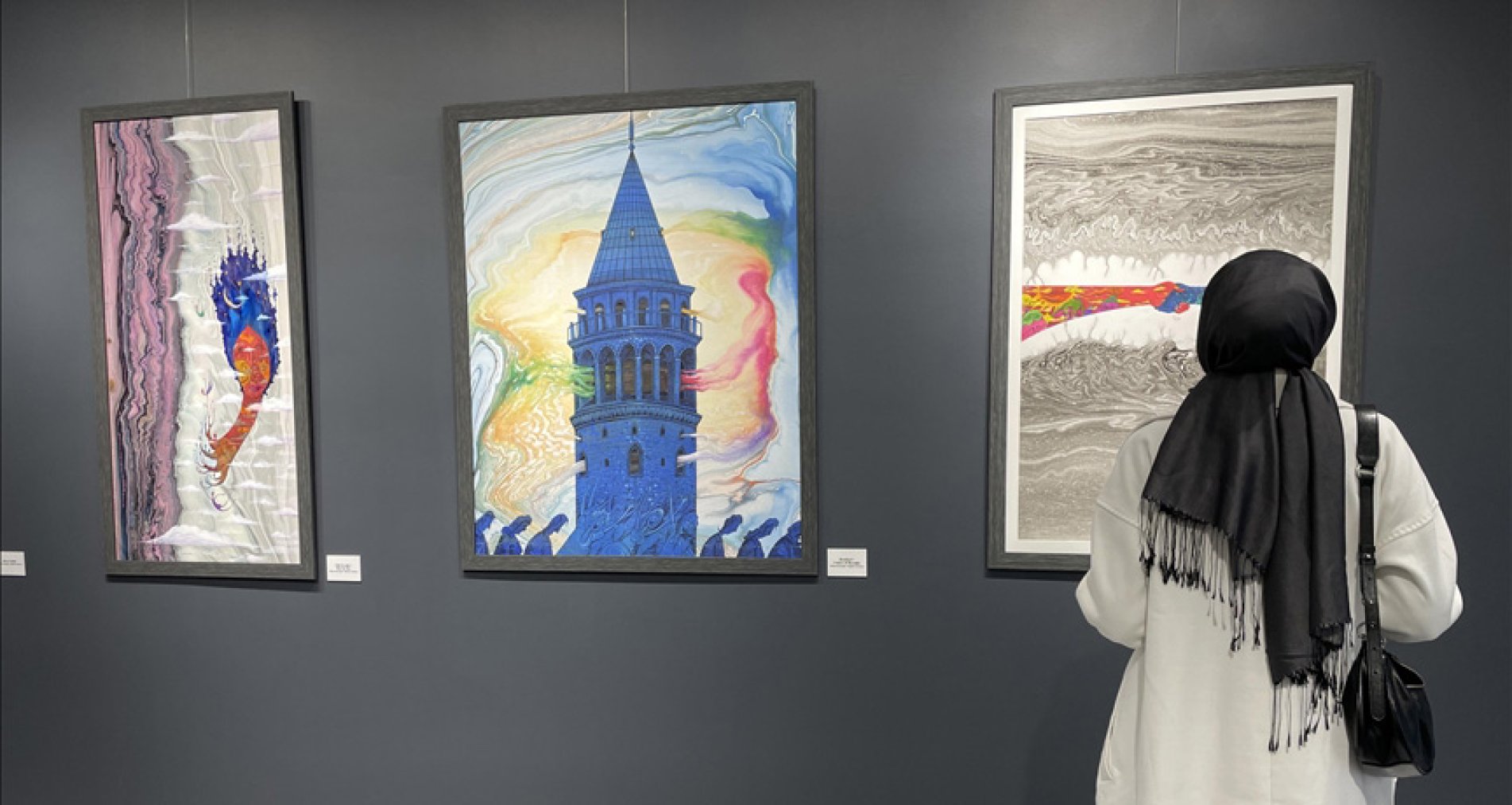 Ebru sanatçısı Hikmet Barutçugil tarafından yapılmış ebrularla, çizer ve ressam Dağıstan Çetinkaya'nın dokunuşlarını buluşturan "Hikmet-i Dağıstan" sergisi sanatseverlerin beğenisine sunuldu.