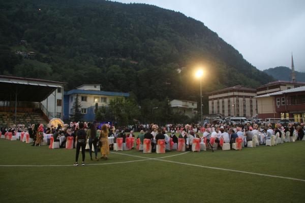 Rize'nin İkizdere ilçesinde pandemi nedeniyle açık havada düğün yapmayı tercih eden çiftler için futbol sahası hizmete sunuldu. İlçede yeşil sahada düzenlenen düğünlerde sosyal mesafeye dikkat eden davetliler, eğlenceli anlar yaşıyor.