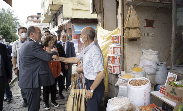 Rize'nin Çayeli ilçesinde selden etkilenen vatandaşları ziyaret ederek "geçmiş olsun" dileklerini ileten İnce, esnafın sorunlarını ve taleplerini dinledi.