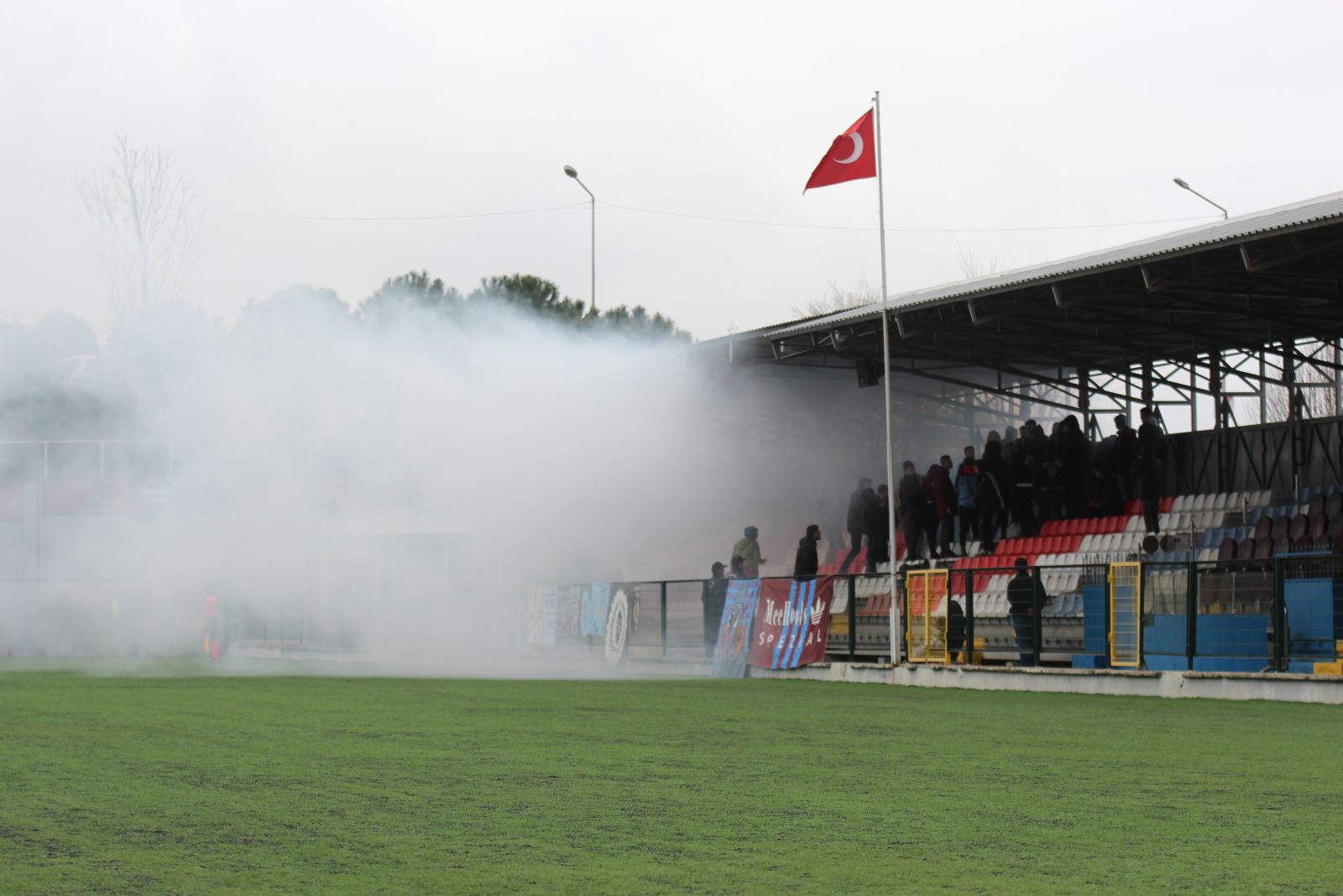 Karşılaşmanın 61. dakikasında tribünde meşale yakan bir grup Trabzonsporlu taraftara polis ekipleri tarafından müdahale edildi. Müdahalenin ardından meşale yaktıkları tespit edilen iki taraftar gözaltına alındı. Arkadaşlarının gözaltına alınmasına tepki gösteren taraftarlar ile polis ekipleri arasında kısa süreli gerginlik yaşandı. Polis aracına bindirilen iki taraftar, işlemler için karakola götürülürken, bordo-mavili taraftarların Trabzonspor Kadın Futbol Takımı’nı desteklemek için İstanbul’dan geldikleri ve takımın bütün maçlarına gittikleri öğrenildi.