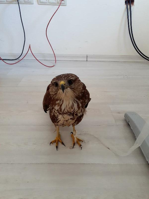 Samsun'da devriye gezen polis ekiplerince yoğun kar yağışı altında yaralı ve bitkin halde bulunan doğan, koruma altına alındı.