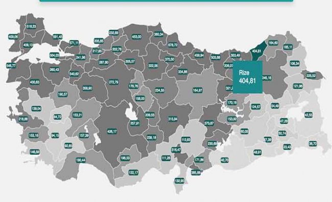 Vaka sayıları bir önceki haftaya göre 100 bin kişide Hakkari'de 1,07, Sinop'ta 5,54, Şırnak'ta 9,86, Burdur'da 10,11, Bitlis'te 10,25 arttı.