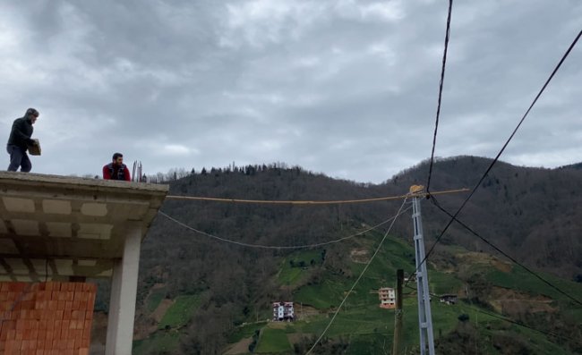 Rize'de elektrik direğinde mahsur kalan kedi, baba ve oğulun bina ile elektrik direği arasına tahtadan 6 metre uzunluğunda yaptığı kedi yolu sayesinde kurtarıldı. Buradan geçip binaya ulaşan kedi, gözden kayboldu.