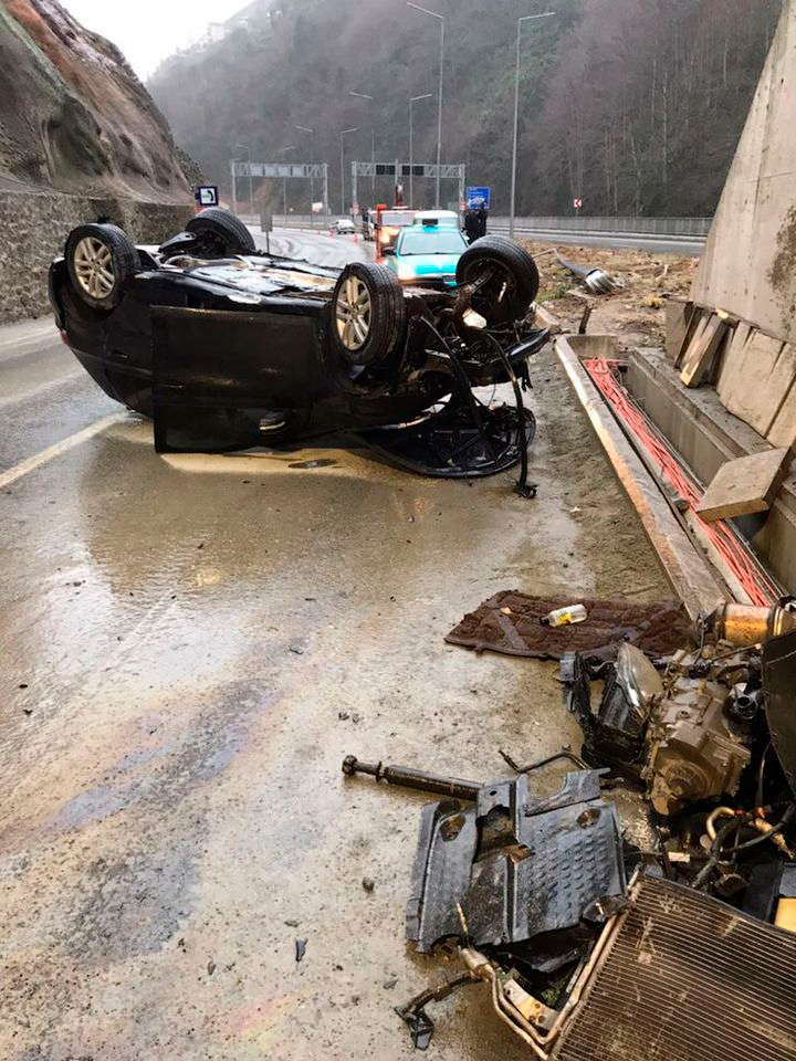 Edinilen bilgilere göre ilçedeki Hurmalık Tüneli girişinde seyreden araç, yağış nedeniyle kayganlaşan yolda sürücüsünün direksiyon hakimiyetini kaybetmesiyle devrildi.