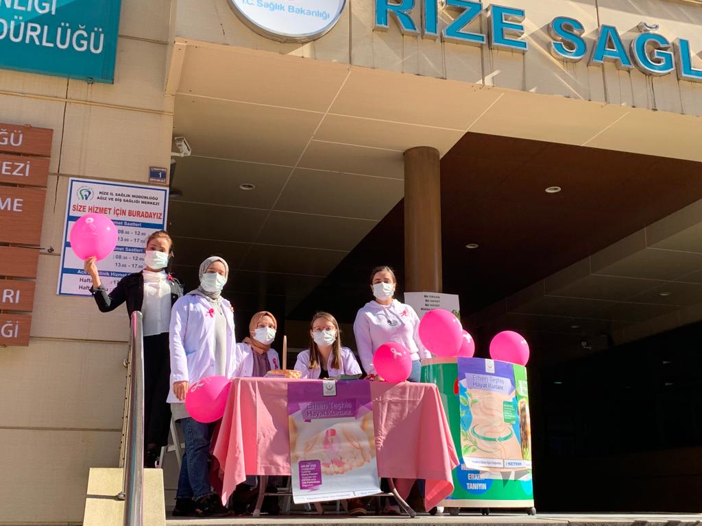 Rize İl Sağlık Müdürlüğü'nden yapılan açıklamada, toplum tabanlı kanser taramalarının Kanser Erken Teşhis, Tarama ve Eğitim Merkezi (KETEM), Aile Sağlığı Merkezleri (ASM) ve Toplum Sağlığı Merkezlerinde ücretsiz olarak yapıldığı hatırlatılarak, "Meme kanserinde erken teşhisin önemi ve meme kanseri farkındalığının vurgulanması amacıyla Rize Sağlıklı Hayat Merkezi’nde bulunan KETEM birimi tarafından Sağlık Kompleksi binası girişinde stand kurularak meme kanseri broşürleri dağıtılıp merkezimize başvuran kişilerin kanser taramaları yapılmıştır." denildi.