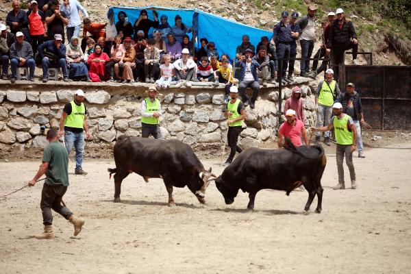 RİZE'nin Çamlıhemşin ilçesinde gerçekleştirilen 26’ncı Ayder Kültür ve Doğa Festivali'nde, geleneksel ödüllü boğa güreşleri düzenlendi. Boğaların arenada kıyasıya güreşlerini kadın sahipleri de heyecanla izledi.